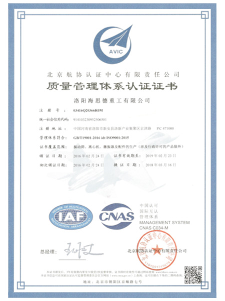 通過ISO9001質(zhì)量管理體系認(rèn)證并取得證書。